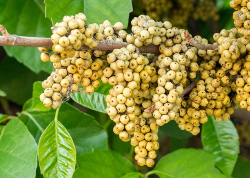 Les fruits apparaissent en été. Les baies forment des grappes.