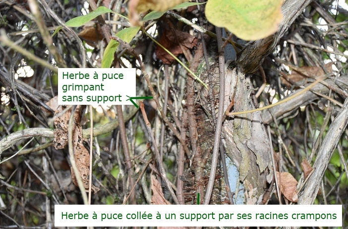 L'herbe à puce se diffuse rapidement. Ici dans une haie de pyracanthas (Poitou).
