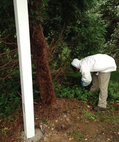 Élimination de l'herbe à puce par une entreprise d'espace vert, en Amérique du Nord.